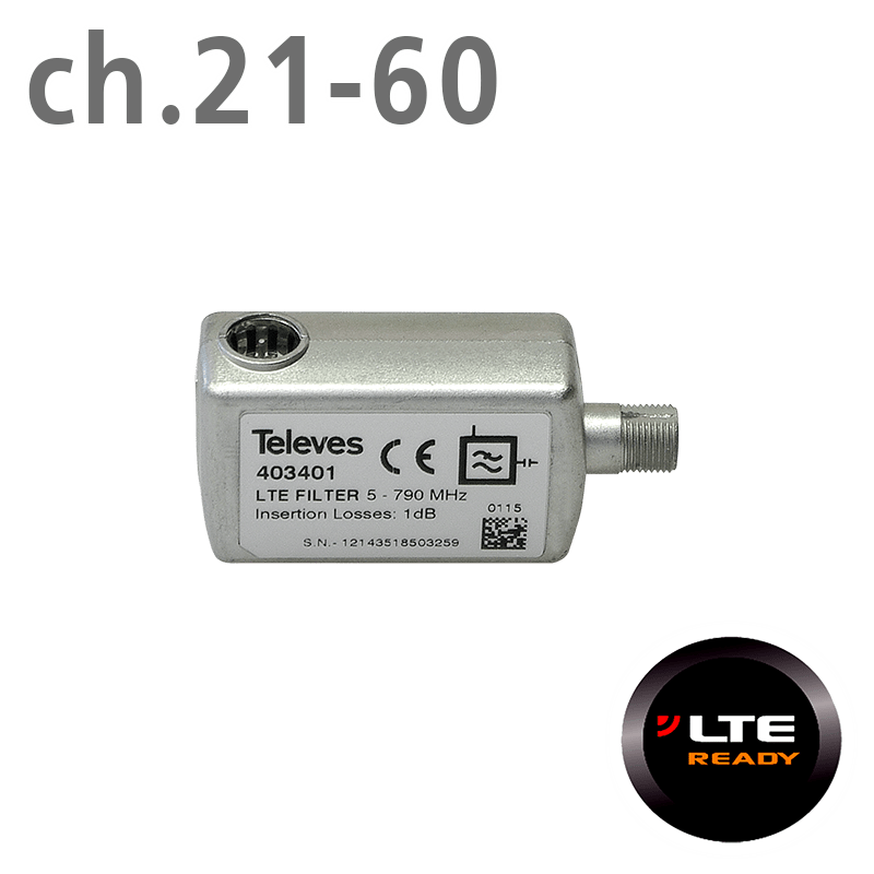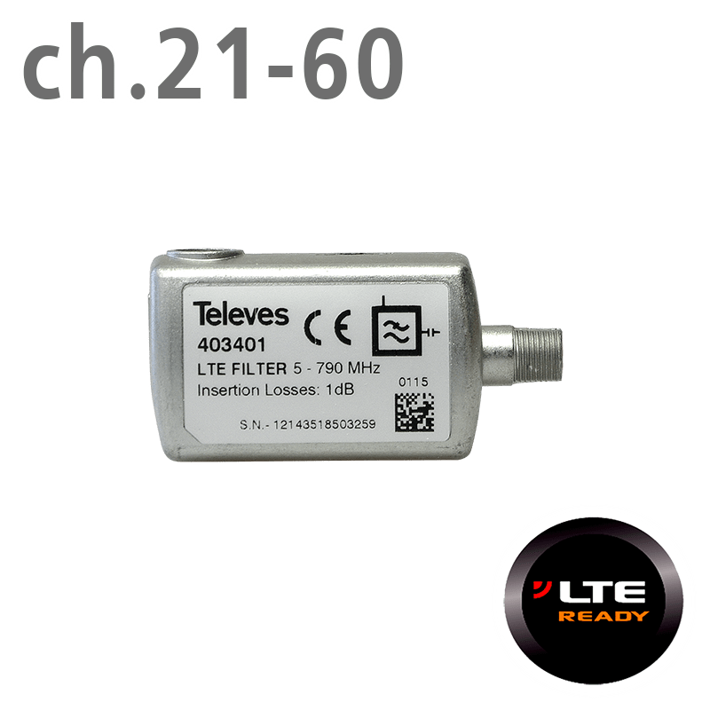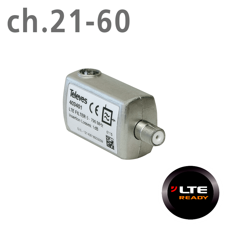 ΦΙΛΤΡΟ 4G-LTE [5 - 790 MHZ], με σύνδεση βύσματος εξόδου σήματος F θηλυκο. Για απόρριψη συχνοτήτων 4G-LTE (καναλι 60) απο το τηλεοπτικό σήμα.