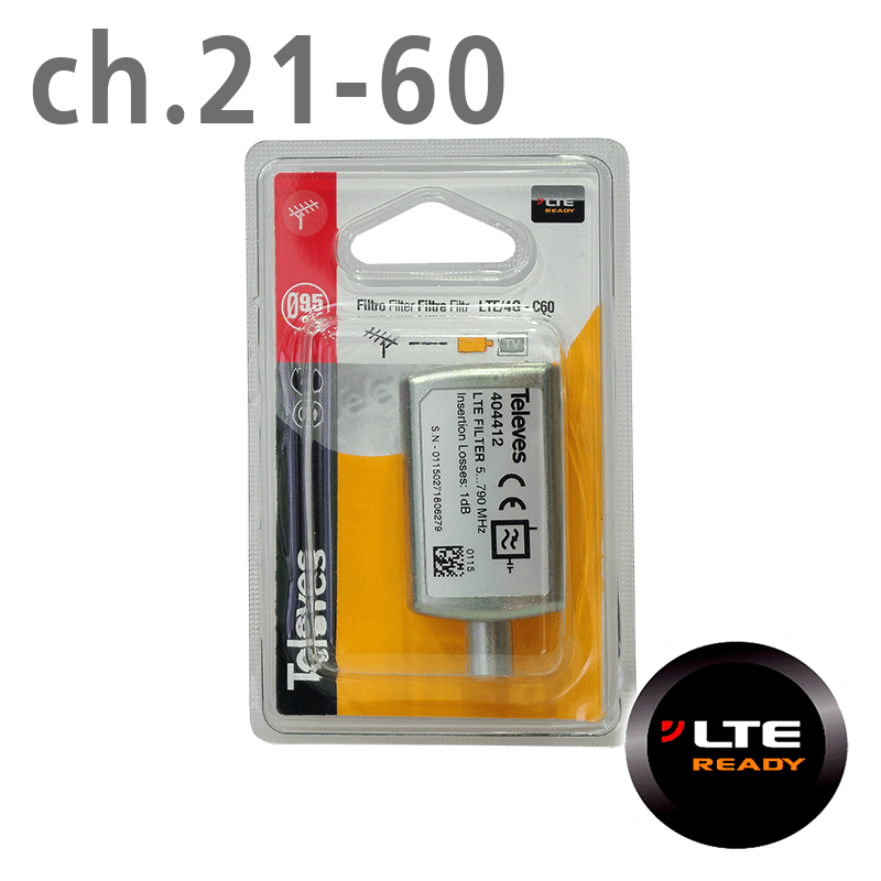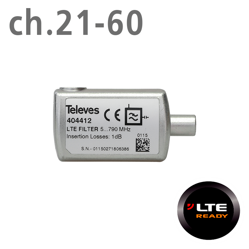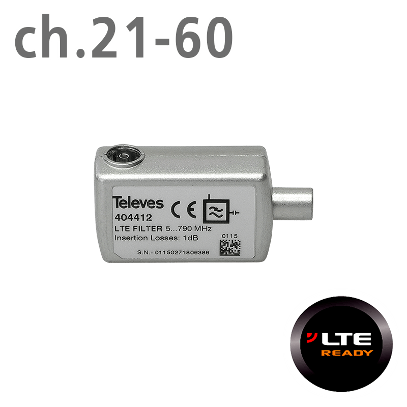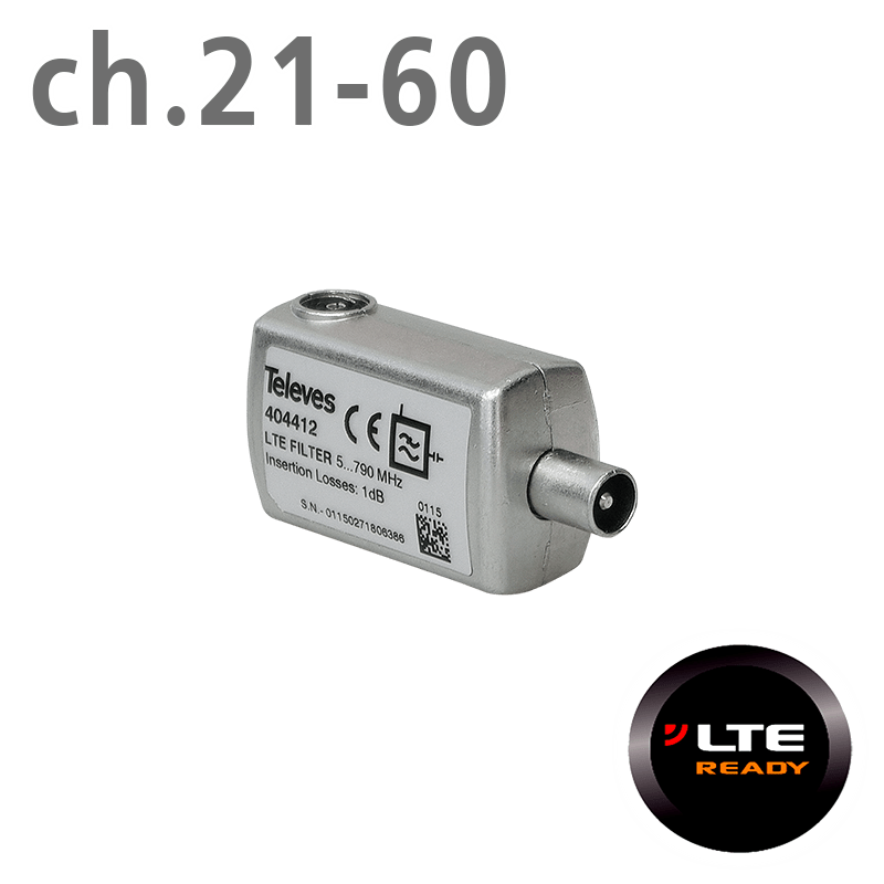 Φίλτρο 4G-LTE [5-790 ΜΗΖ], με σύνδεση βύσματος εξόδου σήματος TV. Για απόρριψη συχνοτήτων 4G-LTE (καναλι 60) απο το τηλεοπτικό σήμα. Συσκευασία BLISTER.