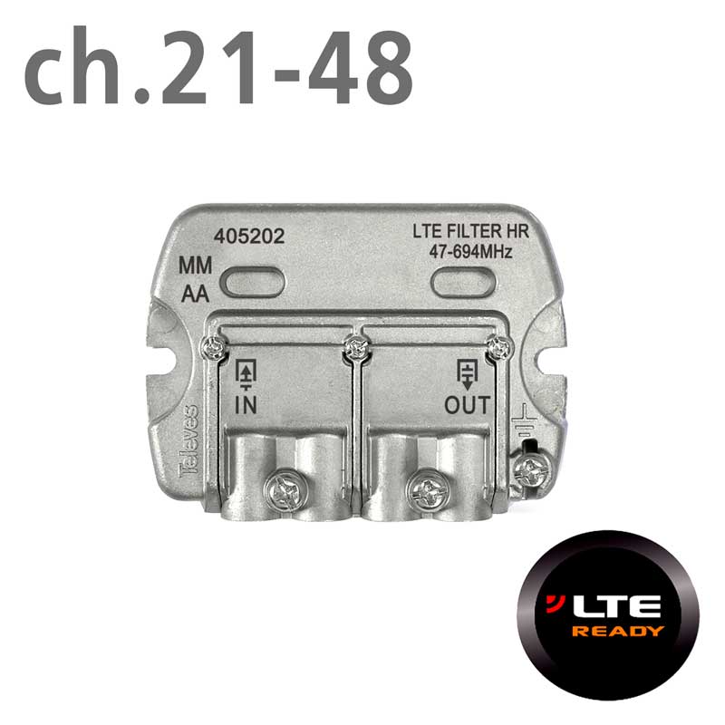 Televes 405202 φίλτρο αποκοπής συχνοτήτων 5G-LTE [733-862 ΜΗΖ] με συνδέσεις EASY-F και ειδικό κυτίο για τοποθέτηση και σε εξωτερικό χώρο, επάνω στον ιστό. Απορρίπτει τις συχνότητες απο το κανάλι UHF 48 και πάνω, προστατεύοντας το τηλεοπτικό σήμα απο τις παρεμβολές του φάσματος 5G LTE. Είναι κατασκευασμένο απο κράμα Zamak για θωράκιση του σήματος. Διαθέτει βίδα γείωσης και σύνδεση βύσματος εξόδου σήματος τύπου EASY-F, με μεταλλική δαγκάνα χωρίς ανάγκη χρήσης βύσματος σύνδεσης, για ευκολία χρήσης ανάλογα με το σημείο τοποθέτησης. Περιέχεται μέσα σε ειδικό κυτίο, χρώματος πορτοκαλί.