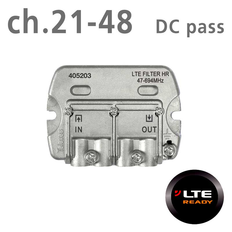 Televes 405203 φίλτρο αποκοπής συχνοτήτων 5G-LTE [733-862 ΜΗΖ] με ΔΙΕΛΕΥΣΗ DC, συνδέσεις EASY-F και ειδικό κυτίο για τοποθέτηση και σε εξωτερικό χώρο, επάνω στον ιστό. Απορρίπτει τις συχνότητες απο το κανάλι UHF 48 και πάνω, προστατεύοντας το τηλεοπτικό σήμα απο τις παρεμβολές του φάσματος 5G LTE. Είναι κατασκευασμένο απο κράμα Zamak για θωράκιση του σήματος. Διαθέτει διέλευση DC για να επιτρέπει την τροφοδοσία ενισχυτών ιστού, διπόλου Televes TFORCE BOSS και ενεργών διπόλων κεραίας. Επίσης διαθέτει βίδα γείωσης και σύνδεση βύσματος εξόδου σήματος τύπου EASY-F, με μεταλλική δαγκάνα χωρίς ανάγκη χρήσης βύσματος σύνδεσης, για ευκολία χρήσης ανάλογα με το σημείο τοποθέτησης. Περιέχεται μέσα σε ειδικό κυτίο, χρώματος πορτοκαλί.