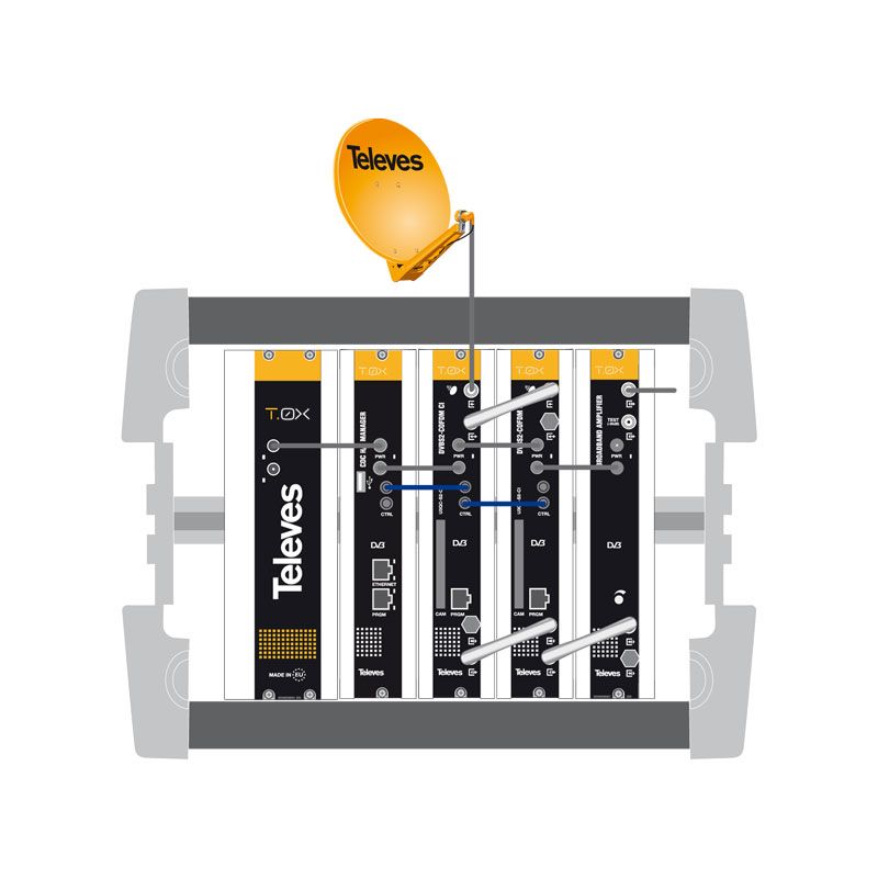 Το TELEVES 507204 είναι ένα κυτiο με κλειδαριά και ανεμιστήρα, για εύκολη τοποθέτηση επαγγελματικών μονάδων headend της σειράς TELEVES T.0X. Ενσωματώνει ενεργό σύστημα εξαερισμού με 3 ανεμιστήρες και έχει 2 κλειδαριές. Μπορει να δεχτεί έως και 4 μονάδες modules της σειράς Τ.0Χ headend και ένα επίσης modular τροφοδοτικό 5629. Μπορεί να τοποθετηθεί σε κάθετες ή οριζόντιες επιφάνειες και περιλαμβάνει ράγες DIN για την αγκύρωση των modules στο εσωτερικό του. Εξασφαλίζει την σταθερή, αξίοπιστη και ασφαλή λειτουργία κάθε επαγγελματικής εγκατάστασης headend, με modules της σειράς Τ.0Χ της TELEVES.