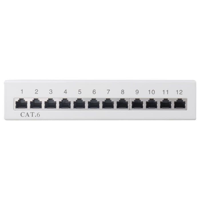 Patch panel κατηγορίας CAT 6 STP, 12 θυρών σε γκρι χρώμα.