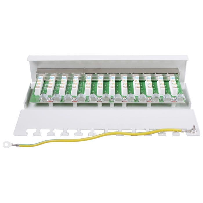 Patch panel κατηγορίας CAT 5e STP, 12 θυρών σε γκρι χρώμα.