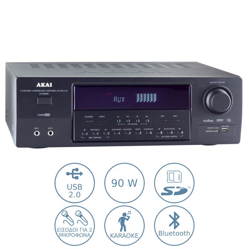 Akai AS110RA-320BT Ραδιοενισχυτής karaoke με Bluetooth και USB – 90 W | Ενισχυτές και Προενισχυτές στο smart-tech.gr