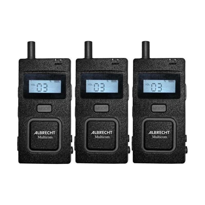 Οι ποµποδέκτες Albrecht Multicom είναι κατάλληλοι για χρήση από διαιτητές κατά τη διάρκεια αγώνων και προσφέρουν πλήρη αμφίδρομη επικοινωνία (ταυτόχρονη ακρόαση και ομιλία) για έως 5 άτοµα και 94 συµµετέχοντες για λήψη µόνο.