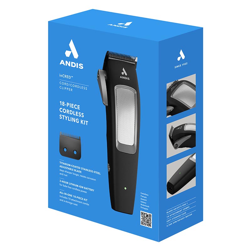 Η επαναφορτιζόμενη-ρεύματος μηχανή κουρέματος inCRED της ANDIS διαθέτει προηγμένο μοτέρ για αποτελεσματικό και ακριβές κούρεμα.