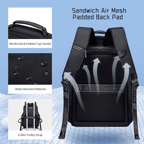 ARCTIC HUNTER τσάντα πλάτης B00492 με θήκη laptop 15.6", μαύρη