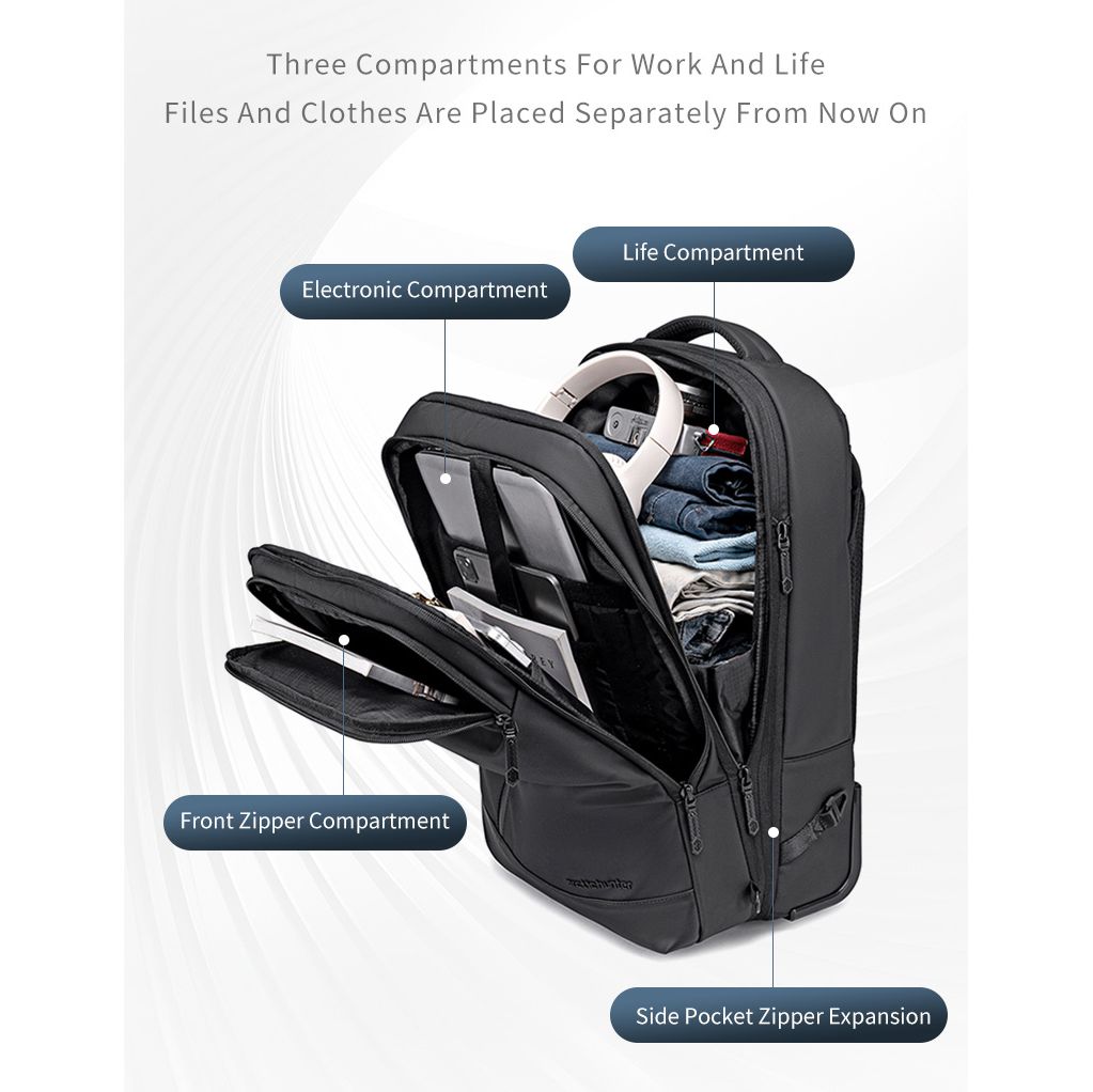 ARCTIC HUNTER τσάντα ταξιδίου LG00861 με θήκη laptop 15.6", τροχήλατη, 42L/54L, μαύρη