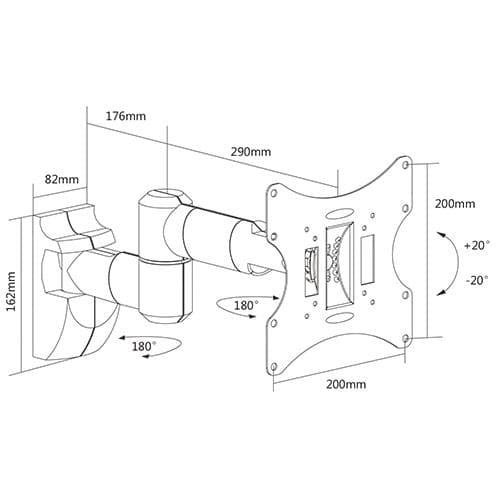 Επιτοίχια βάση στήριξης για τηλεοράσεις LED, LCD ή PLASMA από 23’’ έως 40’’ με δυνατότητα ρύθμισης κατακόρυφης και οριζόντιας κλίσης.