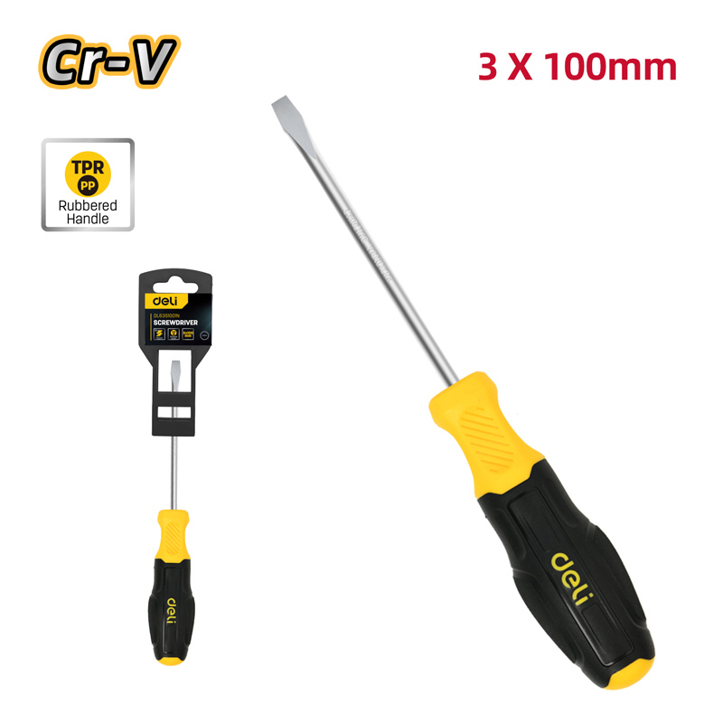 DELI κατσαβίδι ίσιο DL6331001N με αντιολισθητική λαβή, μαγνητικό, 3x100mm