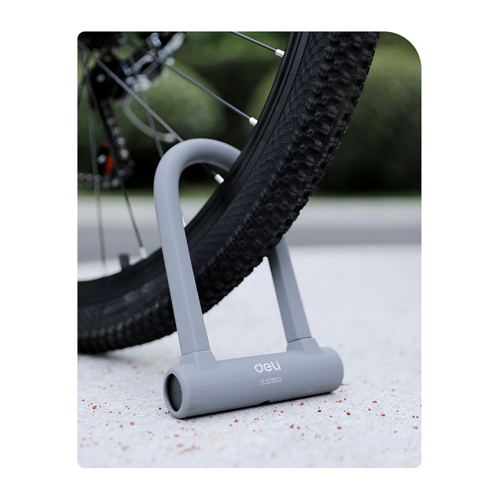 Κλειδαριά πέταλο ποδηλάτου της Deli με ανθεκτική ατσάλινη κατασκευή και εξωτερική επένδυση σιλικόνης, για την προστασία του ποδηλάτου σας από κλοπές.
