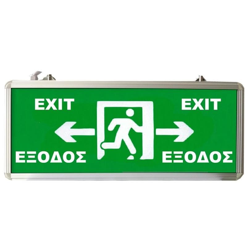 Φωτιστικό σήμανσης εξόδου (προς τα δεξιά και αριστερά) με 6 LED υψηλής φωτεινότητας και επαναφορτιζόμενη μπαταρία Ni-Cd.