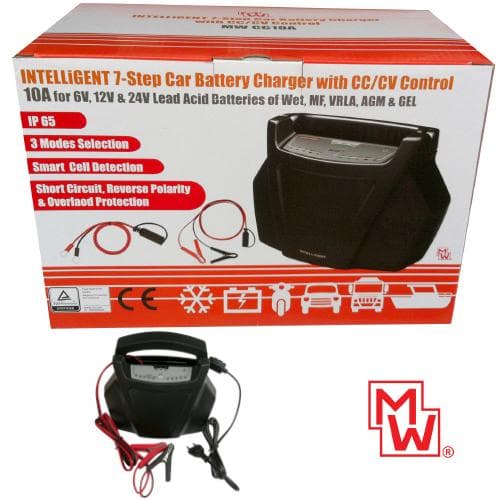 Φορτιστής κατάλληλος για όλες τις μπαταρίες μολύβδου 6V, 12V και 24V με αυτόματη επιλογή τάσης ανάλογα με τη μπαταρία.