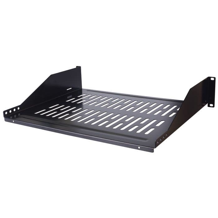 Σταθερό ράφι στηρίγματος 2 σημείων για καμπίνες 19", 2U ύψος και 350 mm βάθος σε μαύρο χρώμα.