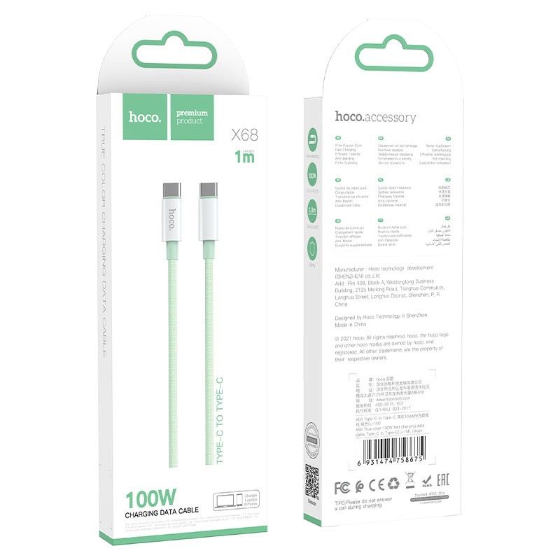 Καλώδιο σύνδεσης Hoco X68 PD True Color Braided USB-C σε USB-C 100W 3A Πράσινο 1m