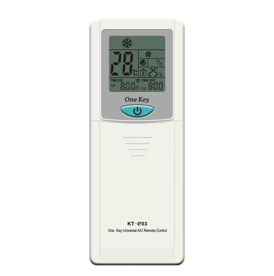 To KT-E03 είναι ένα universal τηλεχειριστήριο για κλιματιστικά A/C (Air condition) με λειτουργία αυτόματης αναζήτησης ή απευθείας εισαγωγή κωδικού με εφαρμογή σε 4000 κωδικούς κλιματιστικών.