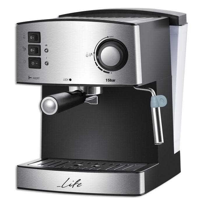 Μηχανή για παρασκευή espresso και cappuccino με πρόσοψη από ανοξείδωτο ατσάλι. Διαθέτει 2 φίλτρα, ένα για μονή δόση και ένα για διπλή δόση, ενώ χάρη στο ακροφύσιο ατμού που διαθέτει μπορείτε να ετοιμάσετε αφρόγαλα για τον αγαπημένο σας cappuccino ή ακόμα και να ζεστάνετε οποιοδήποτε άλλο ρόφημα. Η αντλία 15 bar εγγυάται έντονη γεύση καφέ στη σωστή θερμοκρασία, και το ανοξείδωτο ακροφύσιο ατμού, το τέλειο αφρόγαλα. Τέλος, διαθέτει ανοξείδωτη θερμαινόμενη επιφάνεια στο επάνω μέρος της για να ζεσταίνετε τα φλιτζάνια σας, ώστε να έχετε ένα ακόμη πιο γευστικό αποτέλεσμα. Η μηχανή espresso LIFE Ristretto αποτελεί τον ιδανικό συνδυασμό απόδοσης και ποιότητας, διαθέτοντας όλα όσα χρειάζεστε για ένα απολαυστικό φλυτζάνι espresso.