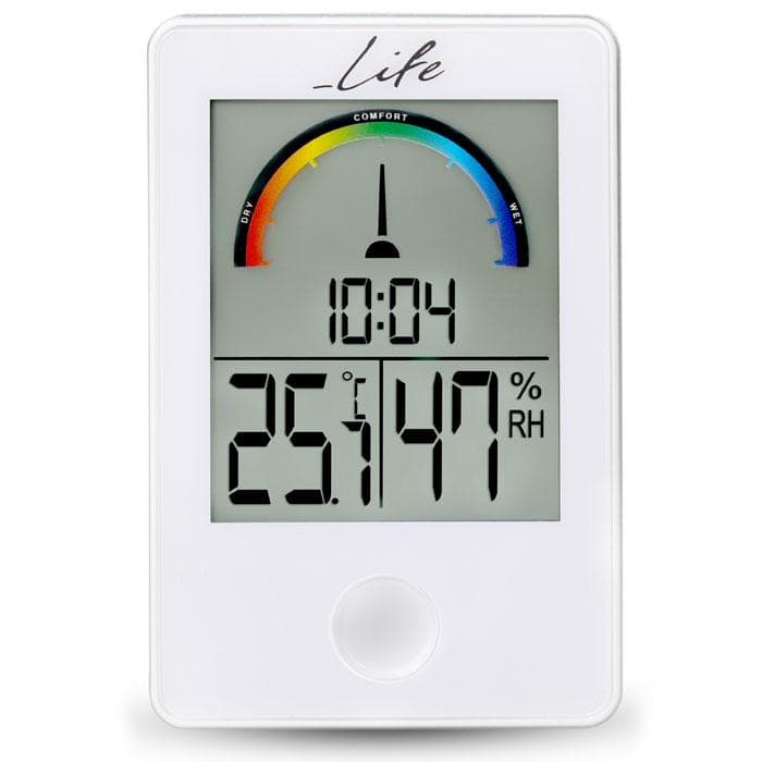 Με μεγάλη, ευκρινή οθόνη, για να παρακολουθείτε την θερμοκρασία και τα επίπεδα υγρασίας στον χώρο σας, καθώς και των υψηλότερων/χαμηλότερων μετρήσεων εντός της ημέρας. Επιπλέον διαθέτει ρολόι και έγχρωμη, ψηφιακή απεικόνιση του επιπέδου άνεσης υγρασίας.