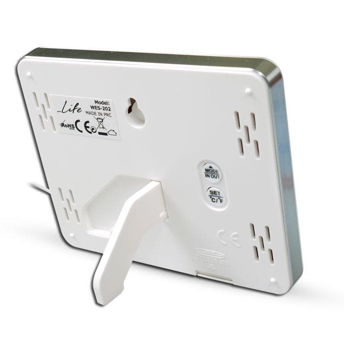 Μετεωρολογικός σταθμός με ενδείξεις θερμοκρασίας εσωτερικού και εξωτερικού χώρου, καθώς και χαμηλότερης/υψηλότερης ημερήσιας καταγραφής. Επιπλέον διαθέτει ρολοι και ενσύρματο αισθητήρα με μακρύ, ανθεκτικό καλώδιο μήκους 1,5m το οποίο μπορεί να περαστεί εύκολα στον εξωτερικό χώρο π.χ από το παράθυρο. Σε απλό και μοντέρνο design, ιδανικό για κάθε χώρο, που μπορεί να τοποθετηθεί οπουδήποτε εσείς θέλετε στον χώρο σας, αφού λειτουργεί με μπαταρίες.