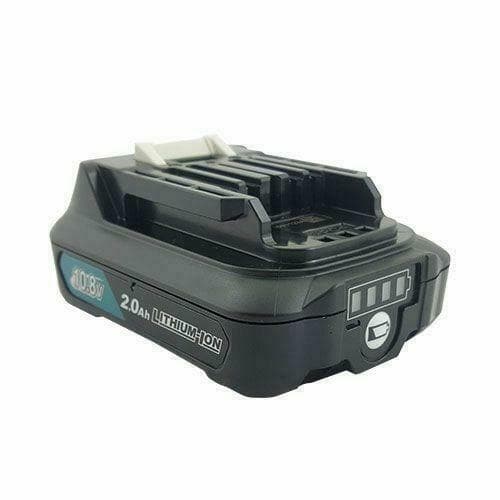 Συμβατή επαναφορτιζόμενη μπαταρία ηλεκτρικών εργαλείων Makita 10.8v 2Ah, Li-ion, με δείκτη χωρητικότητας, συρταρωτή, χρώματος μαύρο.