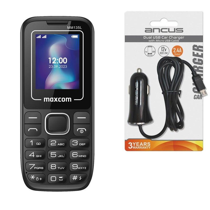 Maxcom MM135 Light (Dual Sim) 1,77" + Φορτιστής Αυτοκινήτου Ancus Micro USB