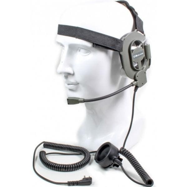 Κεφαλοακουστικό στρατιωτικού τύπου με διάφανο ακουστικό τύπου airtube & μικρόφωνο τύπου Boom, με εξωτερικό PTT ειδικού τύπου.