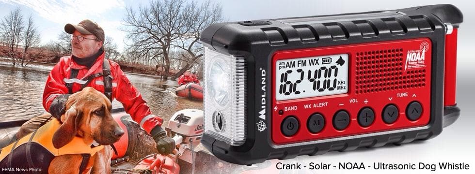 Μια πολύ πρακτική φορητή συσκευή που μπορείτε να έχετε πάντα μαζί σας όπου κι αν βρίσκεστε, με ραδιόφωνο FM/ΑΜ, ισχυρό φακό LED (130 Lumens - 1400 Lux), δυνατότητα εκπομπής μηνύματος SOS μέσω σημάτων Morse (SOS Flashlight Beacon) και σφυρίχτρα υπερήχων για σκύλους (βοηθά ομάδες διάσωσης στον εντοπισμό ατόμων).