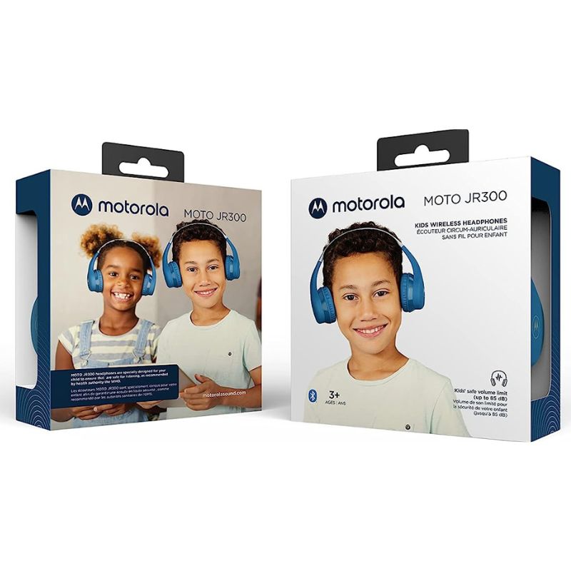 Τα ασύρματα ακουστικά MOTO JR300 είναι ειδικά σχεδιασμένα για το παιδί σας, καθώς υπάρχει όριο έντασης των 85 dB, ώστε να είναι ασφαλή για ακρόαση. Απαλλάσσεστε από τα μπερδεμένα και ξεφτισμένα κορδόνια. Είναι εξοπλισμένα με Bluetooth και χρόνο αναπαραγωγής έως και 24 ώρες με μία μόνο φόρτιση, για να απολαμβάνει το παιδί σας την αγαπημένη του μουσική. Περιλαμβάνουν καλώδιο ήχου 3,5 mm για χρήση με συσκευές που δεν διαθέτουν Bluetooth. Διαθέτουν μικρόφωνο για κλήσεις και λειτουργία handsfree με εύκολα κουμπιά ελέγχου. Είναι ανθεκτικά σχεδιασμένα με εξαιρετικά μαλακό κεφαλόδεσμο και μαξιλαράκια με κέλυφος αυτιού για άνετη, ρυθμιζόμενη εφαρμογή σε ηλικίες 3+. Αυτά τα ακουστικά κεφαλής διαθέτουν ενσωματωμένο διαχωριστή ήχου για κοινή χρήση έως και 4 ακουστικών ταυτόχρονα, με φίλους και οικογένεια. Eίναι ιδανικά για ταξίδια με τα μικρά σας καθώς και για μάθηση στο σπίτι.