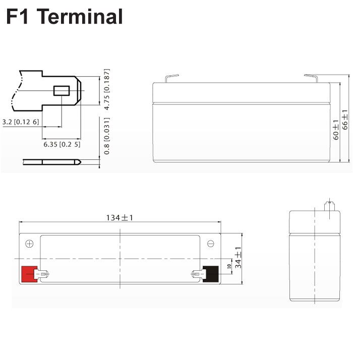 Μπαταρία μολύβδου ULTRACELL 6V 3.4AH Διαστάσεις: - μήκος: 13,4 cm - πλάτος: 3,4 cm - ύψος: 6 cm - Τύπος Terminal: F1