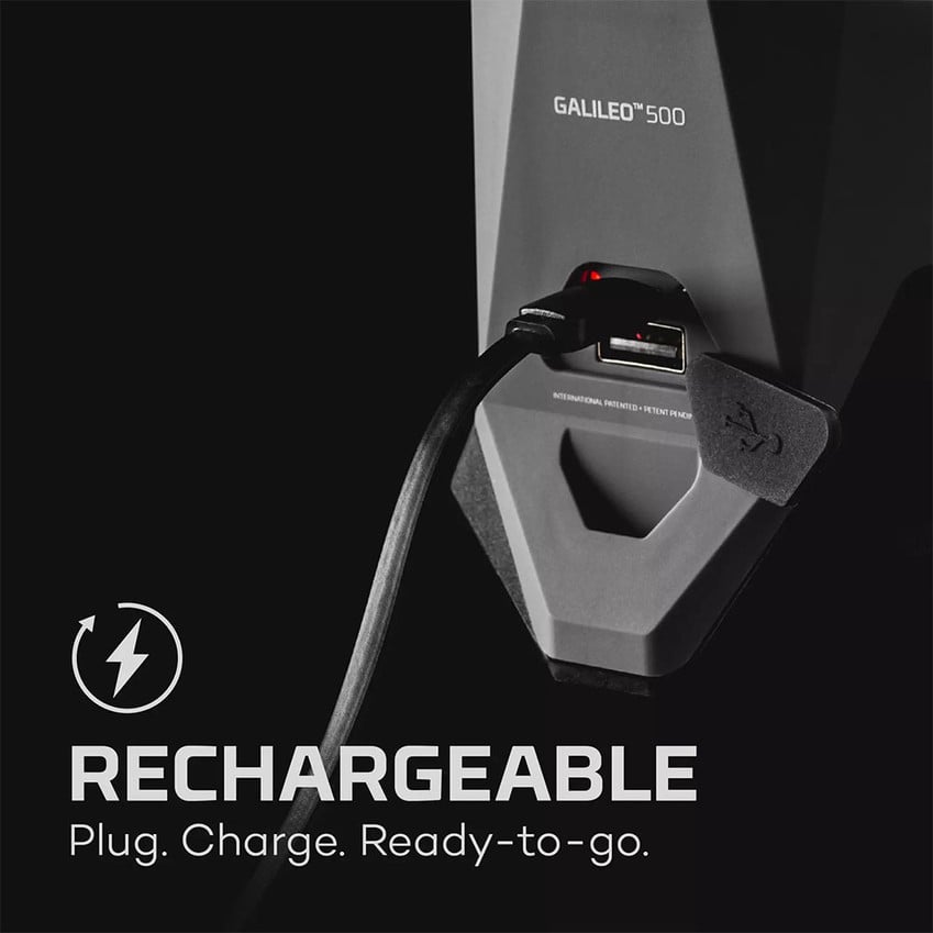 Το Galileo έχει απόδοση 500 lumens, ιδανικό φωτιστικό για εσωτερική ή εξωτερική χρήση. Διαθέτει υποδοχή εξόδου USB για τροφοδοσία ή φόρτιση των περισσότερων συσκευών USB και μια λαβή στυλ carabiner.