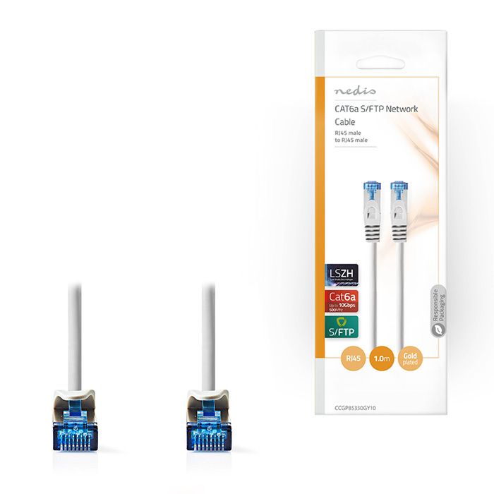 Καλώδιο δικτύου CAT 6a, S/FTP patchcable, 1.00m, σε γκρι χρώμα.