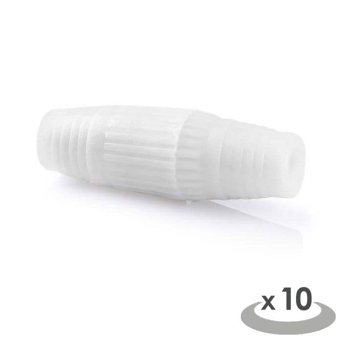Αντάπτορας RF σε λευκό χρώμα, 10 τεμάχια. Χαρακτηριστικά: - Τύπος: Coax - Εξωτερικό υλικό: PVC - Χρώμα: Λευκό - Συσκευασία: Polybag