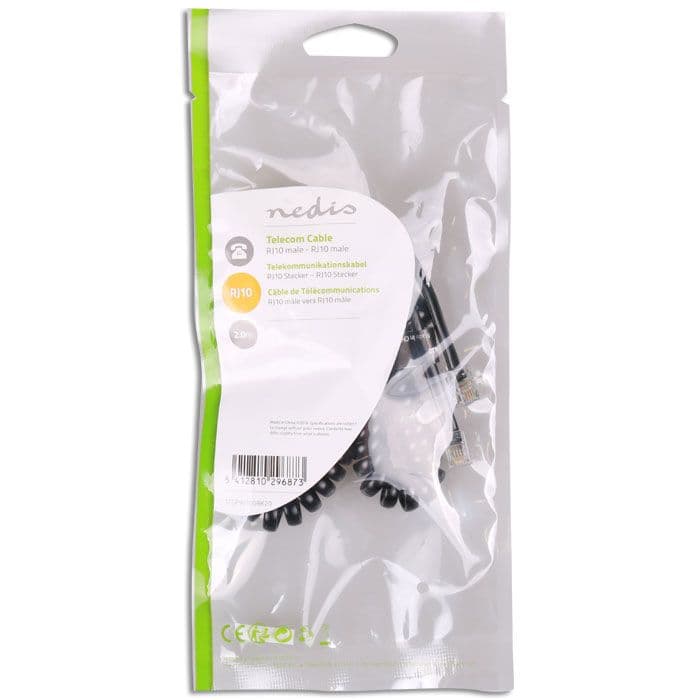 Καλώδιο σπιράλ RJ10 ( ακουστικό συσκευής) αρσ. - αρσ. 2.0 μ., μαύρο.