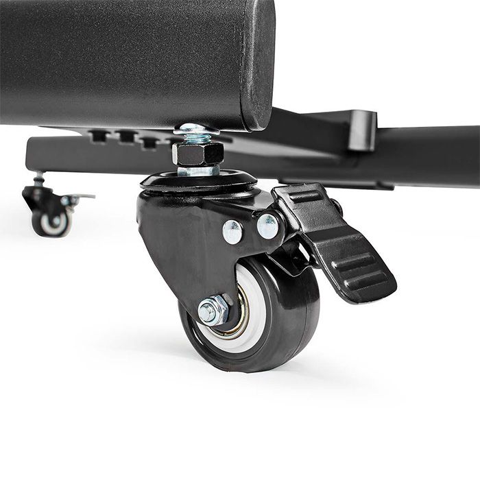 - Διαθέτει 4 τροχούς με μηχανισμό κλειδώματος που μπορούν να μετακινηθούν ή να σταματήσουν εύκολα και ομαλά