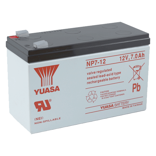 Μπαταρία YUASA 12V - 7Ah. Διαστάσεις: 151x65x97mm – 2,350Kg. Κλειστού τύπου, κατάλληλη για χρήση stand by, ups, συστήματα ασφαλείας.