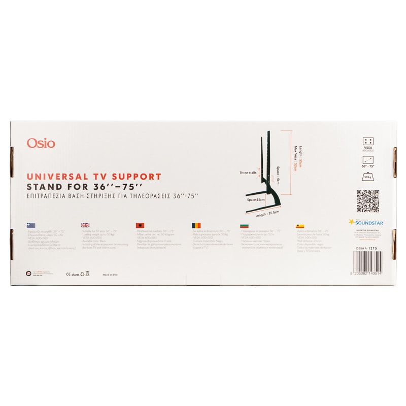 Επιτραπέζια βάση για τηλεόραση 36" - 75". Συναρμολογείται εύκολα και σας παρέχει τη δυνατότητα να απολαμβάνετε άνετα το πρόγραμμα της τηλεόρασης εξοικονομώντας χώρο και τοποθετώντας την τηλεόρασή σας στο ύψος που θέλετε.