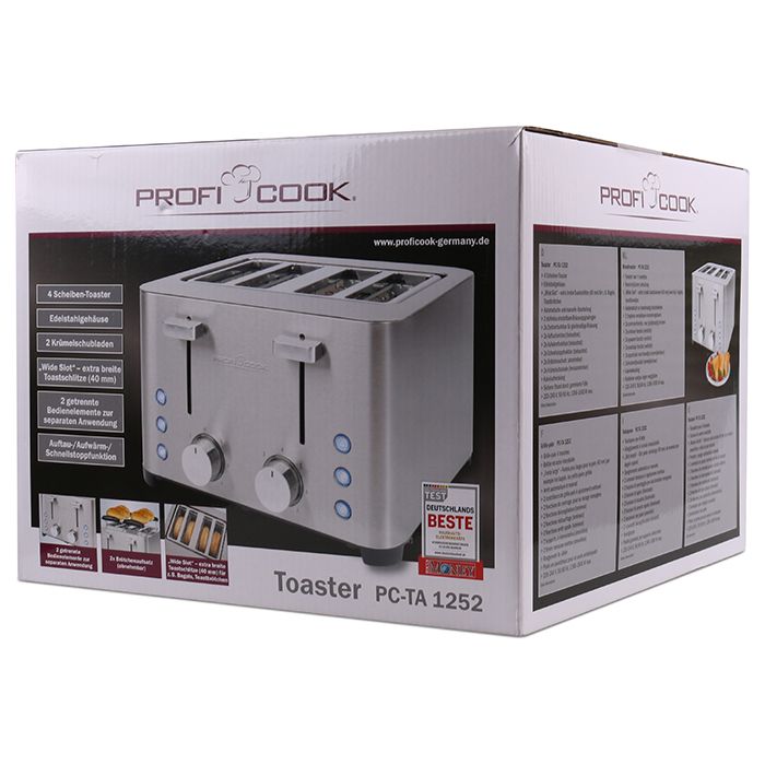 Αυτόματη ανοξείδωτη φρυγανιέρα 4 θέσεων, 1500W.