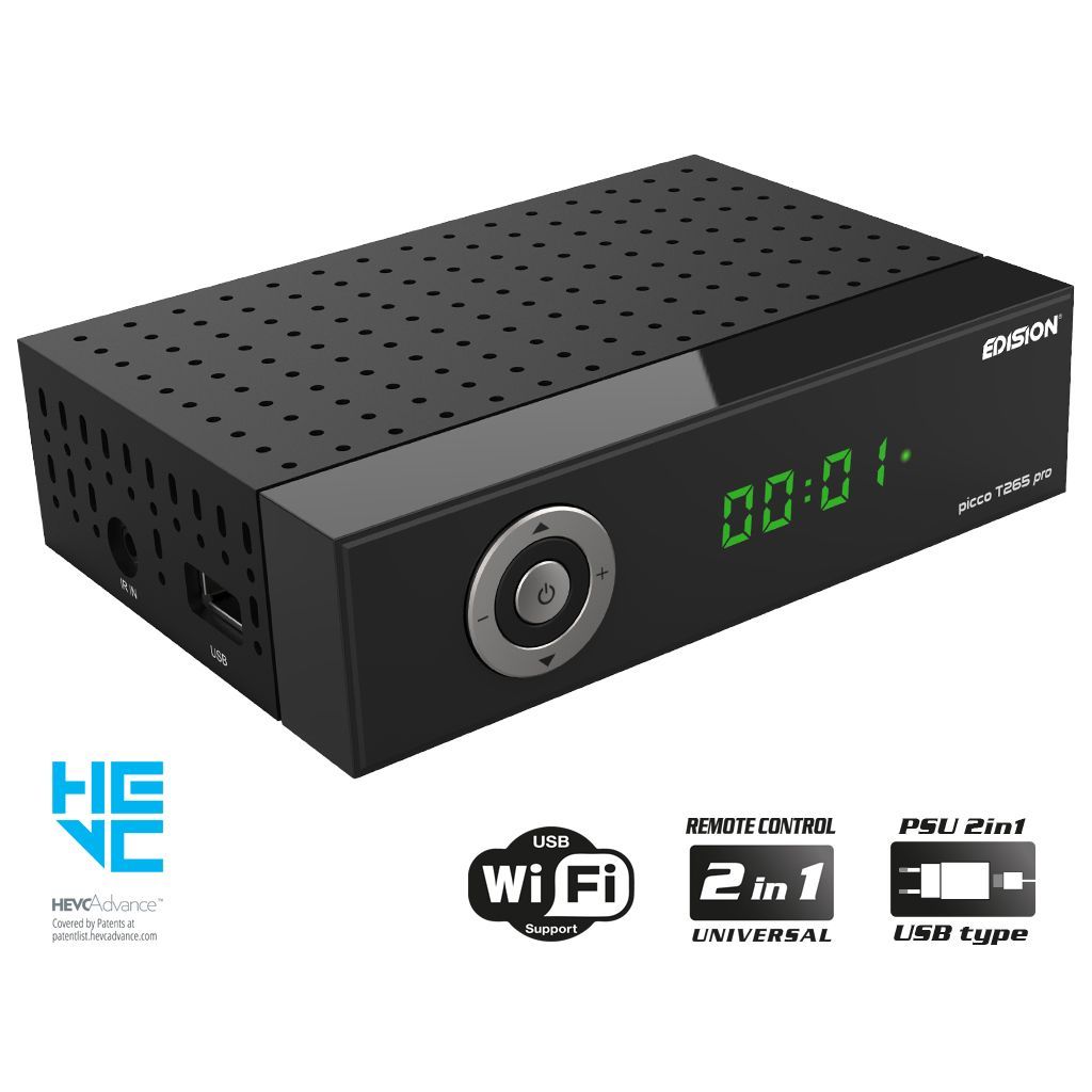 O PICCO T265 pro HD είναι ο νέος αποκωδικοποιητής EDISION, για λήψη Επίγειου ψηφιακού και Καλωδιακού τηλεοπτικού σήματος, Full High Definition DVB-T2/C, H265 HEVC 10Bit. Σύγχρονος σχεδιασμός, αναβαθμισμένες κατασκευαστικές διαδικασίες και νέα αισθητική στη μπροστινή πλευρά, με οθόνη και πέντε (5) πλήκτρα 3 λειτουργιών σε κυκλική διάταξη, συνδυάζονται με νέο επεξεργαστή και στοιχεία κατασκευής, για να σας παρέχει μιά συνολικά κορυφαία εμπειρία θέασης και χρήσης. Στα επιπρόσθετα χαρακτηριστικά του, περιλαμβάνονται το ολοκαίνουριο μοντέλο τηλεχειριστηρίου 2σε1, το EDI-RCU 4 Learn και το τροφοδοτικό PSU 2in1 USB 5V. Το EDI-RCU 4 Learn σας προσφέρει εξαιρετικά εργονομική και πρακτική χρήση και λειτουργία του δέκτη, συμπληρωματικά με έως και 4 λειτουργίες TV LG/SAMSUNG* ή ελεύθερα προγραμματιζόμενων. Το ειδικό τροφοδοτικό PSU 2in1 USB 5V, λειτουργεί ώς κοινό τροφοδοτικό πρίζας ή με το καλώδιο τροφοδοσίας USB που διαθέτει, μπορεί να συνδεθεί σε μια θύρα USΒ της τηλεόρασης. Ο PICCO T265 pro HD υποστηρίζει και USB WiFi, για να σας δώσει πρόσβαση σε δημοφιλείς εφαρμογές όπως YouTube, Πρόγνωση Καιρού αλλά και Online αναβάθμιση λογισμικού (όλα με προσθήκη της επιπλέον κεραίας USB WiFi EDI-Mega). Στα χαρακτηριστικά του περιλαμβάνονται επίσης λειτουργίες H265 Media Player και PVR**. Σχεδιασμένος με εξαιρετική έμφαση στην ευκολία και ευελιξία χρήσης, καθώς συνοδεύεται και από το καλώδιο Jack σε IR, η χρήση του οποίου καθιστά την συσκευή του δέκτη πρακτικά αόρατη, με δυνατότητα τοποθέτησης της πίσω από την τηλεόραση. Με όλα αυτά τα κορυφαία, αναβαθμισμένα χαρακτηριστικά απο την EDISION, ο PICCO T265 pro HD είναι έτοιμος να γίνει ακόμα μία υψηλού επιπέδου επιλογή, για εσάς!