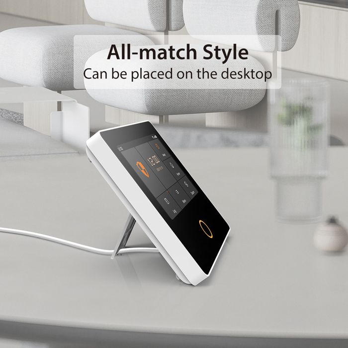 Διαθέτει βολική οθόνη αφής και back up επαναφορτιζόμενη μπαταρία χωρητικότητας 1500mAh. Υποστηρίζει σύνδεση Wi-Fi αλλά και δίκτυο 2G για τηλεφωνικές κλήσεις και αποστολή μηνυμάτων. Επιπλέον, μέσω της εφαρμογής Tuya Smart & Smart Life σας δίνεται η δυνατότητα να ελέγξετε το σύστημα συναγερμού, απομακρυσμένα από την smartphone συσκευή σας. Εξοπλίζεται με σειρήνα για ηχητικό συναγερμό απευθείας από το κεντρικό πάνελ, ενώ, χάρη στο ενσωματωμένο μικρόφωνο, επιτρέπει την αμφίδρομη μεταφορά φωνής και ήχου. Η τοποθέτηση του μπορεί να γίνει είτε επιτοίχια με βίδες είτε επιτραπέζια με ενσωματωμένο kickstand.