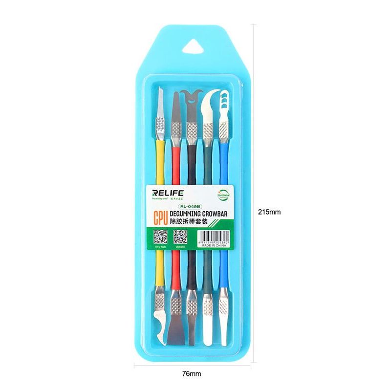 Σετ εργαλείων ανοίγματος με διπλή κεφαλή από την Relife, κατάλληλα για εργασίες όπως αφαίρεση CPU και chip σε επισκευές smartphone.
