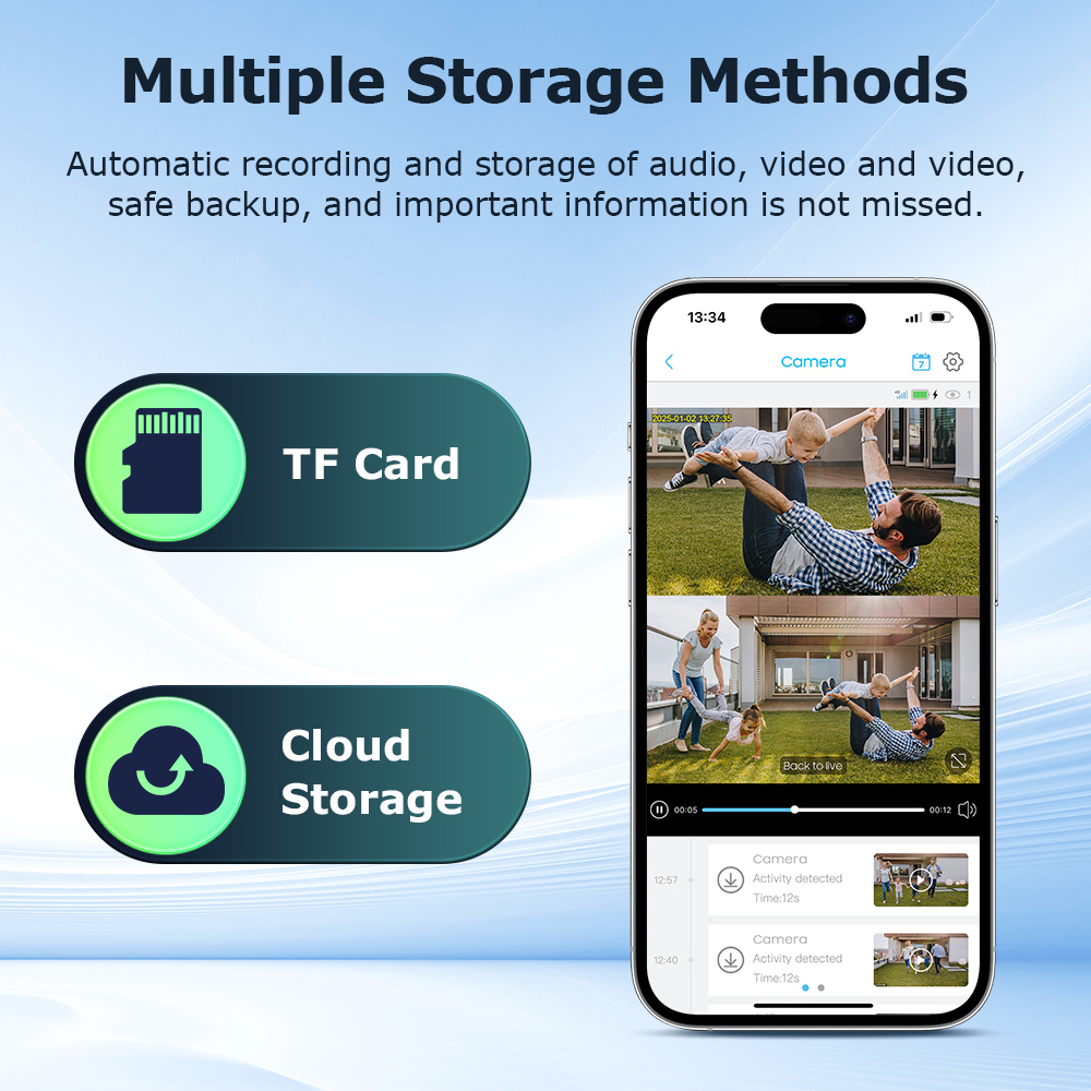 Η αποθήκευση των αρχείων γίνεται απευθείας σε κάρτα μνήμης micro SD (δεν συμπεριλαμβάνεται) ή σε λογαριασμό στο cloud.