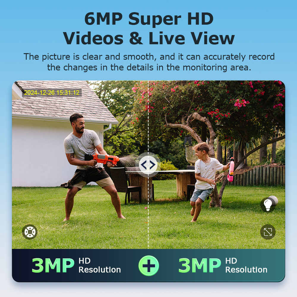 Ενσωματώνει 2 φακούς που επιτρέπουν μεγαλύτερη κάλυψη στον χώρο και υποστηρίζει PTZ λειτουργία που σας επιτρέπει την οριζόντια και κάθετη μετακίνηση της κάμερας μέσω της εφαρμογής.