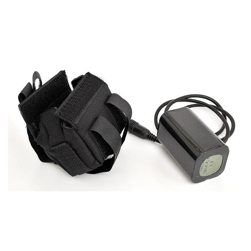 Τροφοδοτείται από πακ επαναφορτιζόμενων μπαταριών λιθίου Li-ion 8.4V συνολικής χωρητικότητας 6400mAh (4 μπαταρίες 18650) τοποθετημένο μέσα σε ειδική αδιάβροχη θήκη με ιμάντες velcro για εύκολη τοποθέτηση στο σώμα του ποδηλάτου.