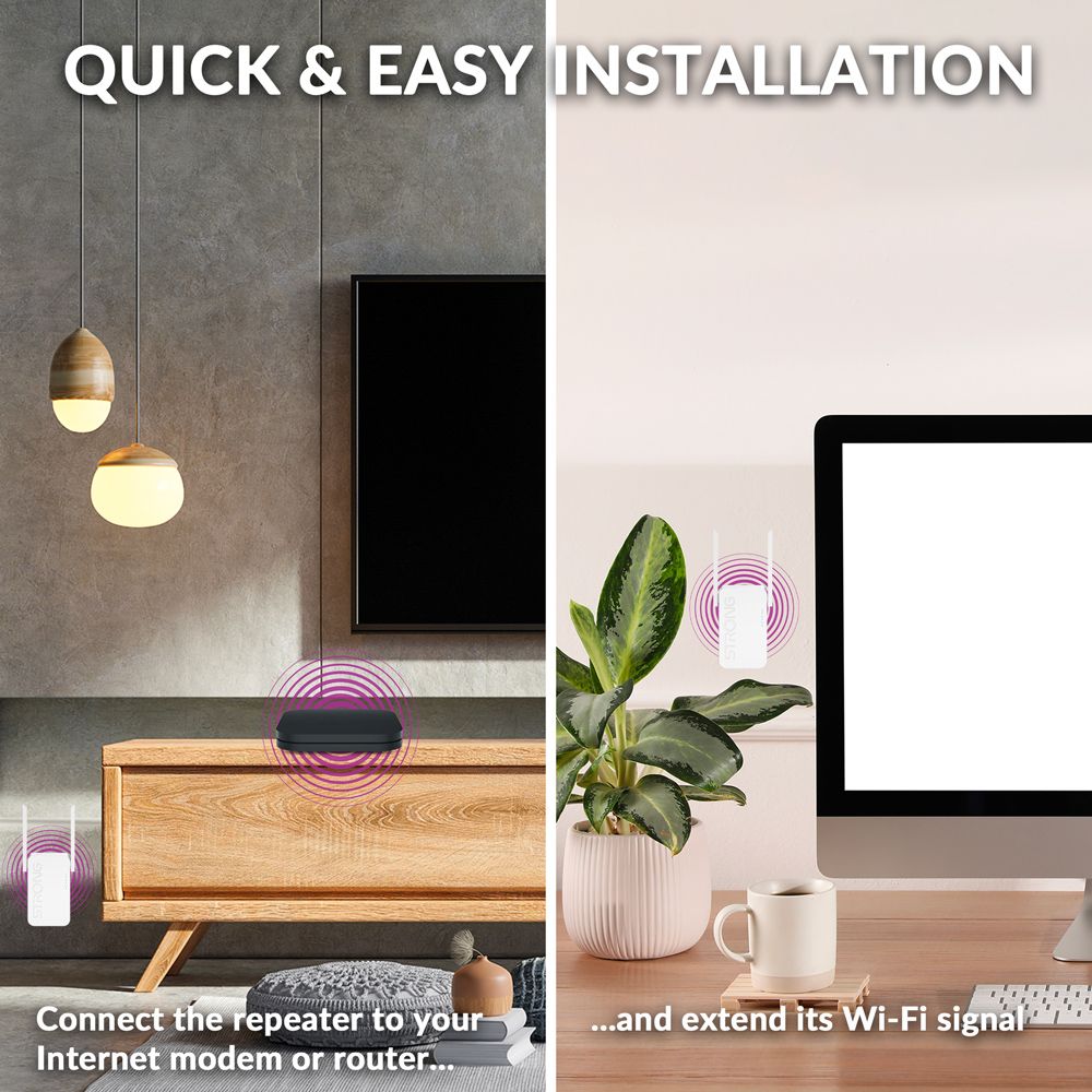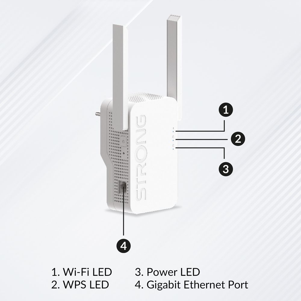 To WiFi Extender της STRONG αποτελεί την τέλεια λύση για να επεκτείνετε εύκολα και γρήγορα την κάλυψη WiFi του modem/router σας.