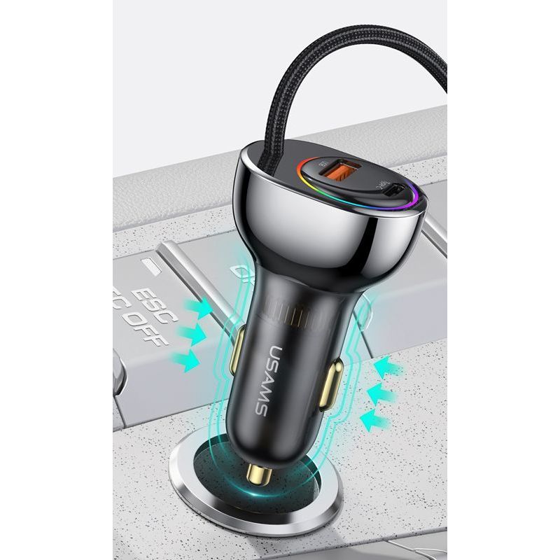 USAMS φορτιστής αυτοκινήτου US-CC192 με καλώδιο, USB/USB-C, 60W, μαύρος