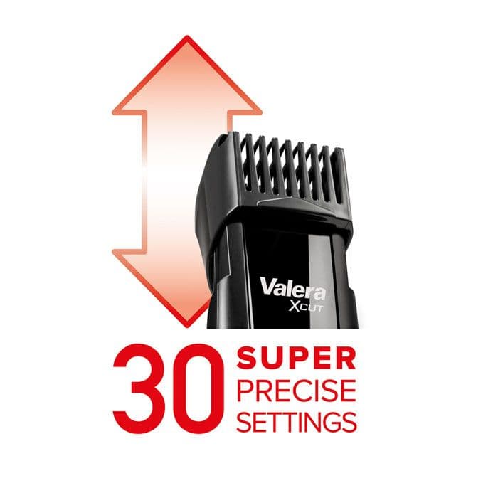 Είναι τόσο απλό να περιποιηθείτε με απόλυτη ακρίβεια τα γένια σας: το Trimmer X-CUT της VALERA εγγυάται στους άντρες την τέλεια εμφάνιση. Χάρη σε τριάντα (!) ρυθμίσεις μήκους από 0,5 έως 15 mm, ο καθένας μπορεί να έχει το μήκος που του ταιριάζει. Το X-CUT μπορεί να λειτουργήσει αμέσως μόλις το συνδέσετε στην πρίζα ή χωρίς καλώδιο με την επαναφορτιζόμενη μπαταρία, που κρατάει έως και 90 λεπτά με πλήρη φόρτιση. Διαθέτει ισχυρές λεπίδες από ανοξείδωτο ατσάλι πλάτους 32 mm, και ισχυρό κινητήρα, καθιστώντας το τέλειο εργαλείο για τα γένια σας. Επιπλέον, μπορείτε να το χρησιμοποιήσετε σε όλα σας τα ταξίδια καθώς λειτουργεί με τάση 100V-240V, ενώ η δυνατότητα φόρτισης μέσω USB, σας "λύνει τα χέρια" !