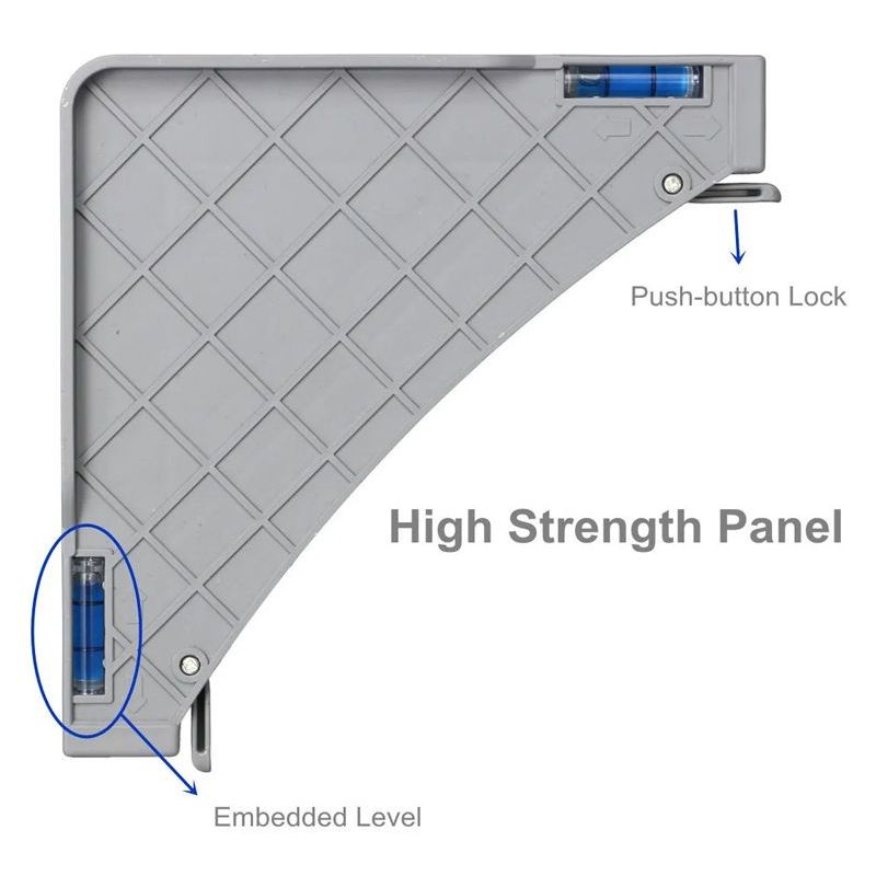 Διαθέτει 4 τροχούς με φρένα ακινητοποίησης, 4 ποδαράκια ρυθμιζόμενου ύψους και αλφάδι για την διευκόλυνση της τοποθέτησης των αντικειμένων.