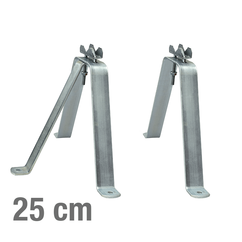 ΣΕΤ Βάσης δύο (2) τεμαχίων, για στήριξη ιστού σε κάθετη επιφάνεια. Ένα στοιχείο δύο σημείων στερέωσης και ένα τριών σημείων στερέωσης. Συνοδεύονται απο δαγκάνες στερέωσης ιστού. 'Ολα τα στοιχεία είναι γαλβανισμένα και ποιοτικά κατασκευασμένα.