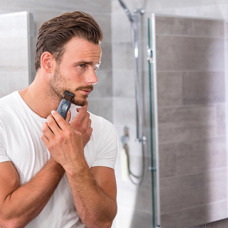 Τρίμερ ρεύματος-επαναφορτιζόμενο από την WAHL! Ενισχυμένο με πανίσχυρο μοτέρ και επαγγελματικές, αυτοακονιζόμενες λεπίδες από ατσάλι με ανθρακονήματα, είναι ιδανικό για γρήγορη και ακριβή περιποίηση της γενειάδας και του περιγράμματος του προσώπου.
