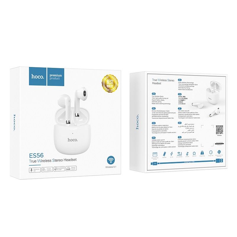 Wireless Hands Free Hoco ES56 Scout TWS V5.1 Εναλλαγή Master/Slave και Συμβατότητα με Siri / Google Assistant Λευκό. Ποτέ ξανά ο ήχος δεν έδειχνε τόσο αισθητικά ποιοτικός! Τα ακουστικά που φτιάχτηκαν για να δείχνουν τόσο επαγγελματικά όσο και εύχρηστα έρχονται με μπαταρία 320mAh στην βάση τους και 30mAh στο κάθε ακουστικό για να δίνουν με 1,5 ώρα φόρτισης έως και 4 ώρες ομιλίας και αναπαραγωγής ή 120 ώρες σε κατάσταση αναμονής. Διαθέτουν λειτουργία εναλλαγής του κύριου/δευτερεύοντος ακουστικού ενώ είναι συμβατά με εντολές Siri για τις συσκευές Apple. Πέρα από την εργoνομική τους σχεδίαση, προσφέρουν καθαρό ήχο και το χαμηλό βάρος τους δεν επιβαρύνει τον χρήστη. Διαστάσεις 49x47x25mm, Βάρος 43g